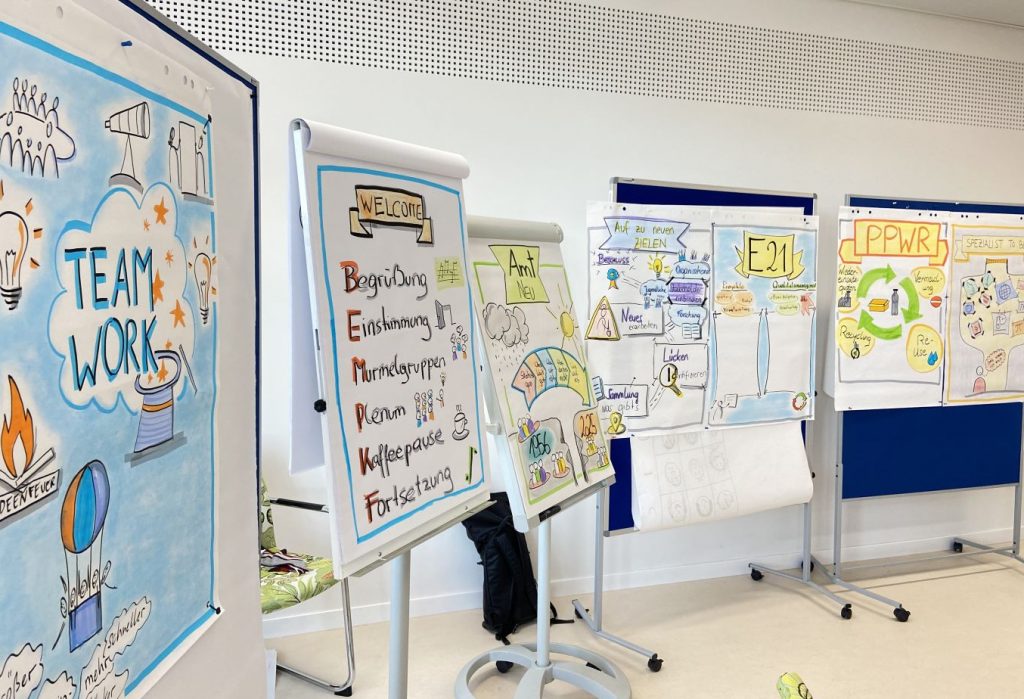 Im Workshop arbeiten wir überwiegend im Großformat am Flipchart.